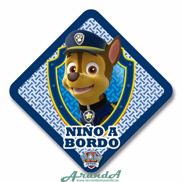 Adhesivo para cristal de coche. Pegatina Niño a BordoDiseño Patrulla Canina. Color Azul. Medida aprox. 20x15cmFijación por fuera del cristal o en la carrocería.