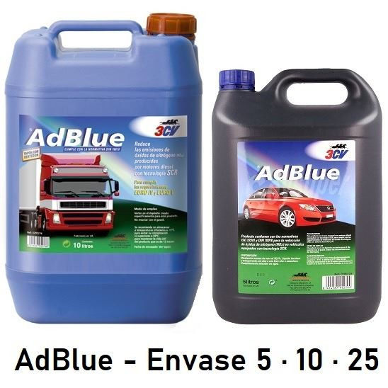Cada vehículo tiene su propio depósito y nivel de líquido AdBlue, el cual, al agotarse, es necesario rellenar con estas garrafas de 5, 10 o 25 litros.