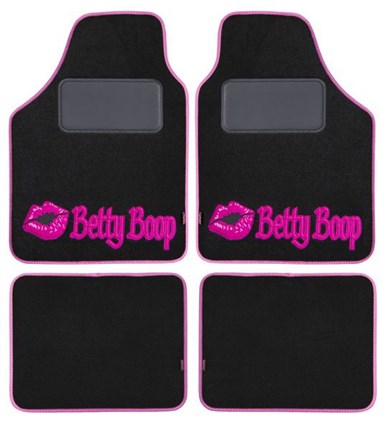 Juego de 4 alfombras para coche. Alfombrillas de moqueta modelo Betty Boop en color negro. La chica...