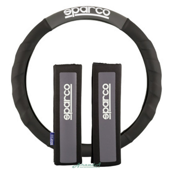 Juego de Funda Volante y Almohadillas Cubrecinturones Sparco. Color gris.Accesorios Sparco para coche. Adaptables a cualquier modelo de coche.Medida estándar. Lavables y fáciles de colocar. Estilo deportivo.