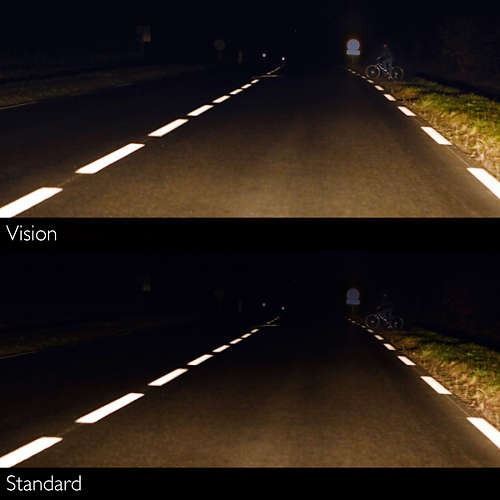 Las bombillas Vision proyectan haces de luz más largos que las bombillas estándar