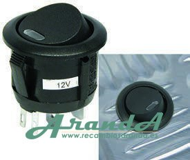 Interruptor Redondo Negro On/Off 12V 20A