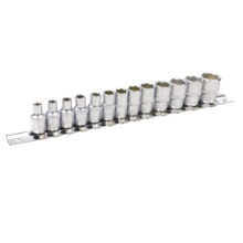 Guía metálica con vasos hexagonales para carraca de 1/4". Medidas: 4, 4.5, 5, 5.5, 6, 7, 8, 9, 10, 11, 12, 13, 14 mm. Cromo-Vanadio