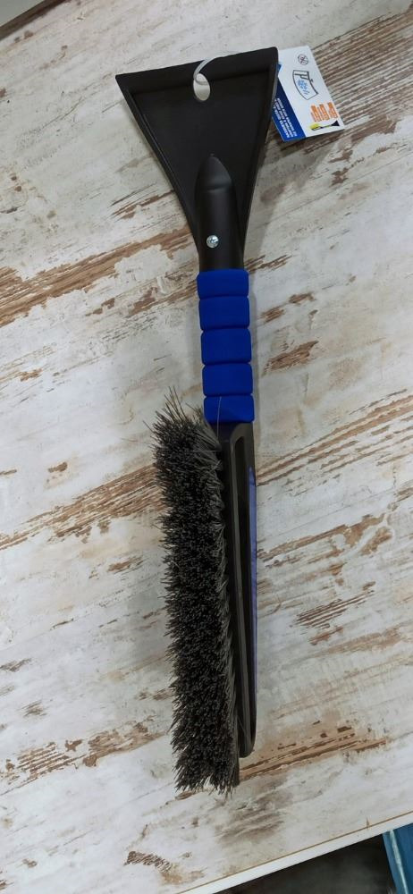 Rasqueta con cepillo para eliminar el hielo y la escarcha de las lunas del vehículo. Extra grande. Longitud total: 43cm Cepillo de 19cm + mango acolchado y rasqueta de 10,5cm de anchura. Ideal para vidrios de gran tamaño o difícil acceso.