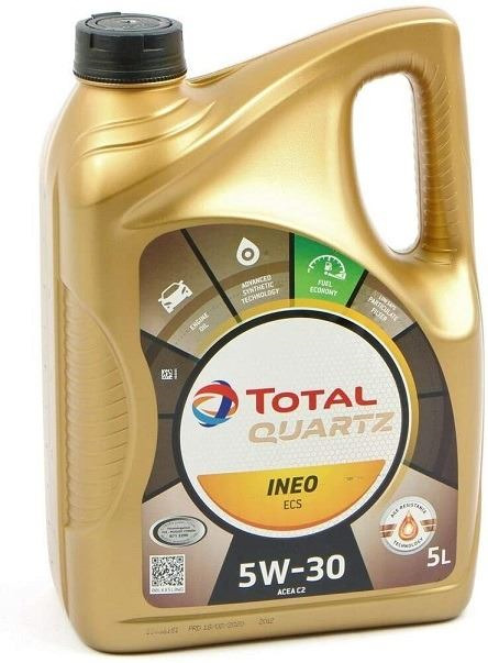 Aceite Total 5W30 Quartz Ineo Ecs. 100% sintético. Motores Diésel y Gasolina con filtro de partículas Aceite habitual en Citroen, Peugeot, Ford, Toyota y Opel Homologación: B71 2290 Acea C2 Función ahorro de carburante y antioxidación.